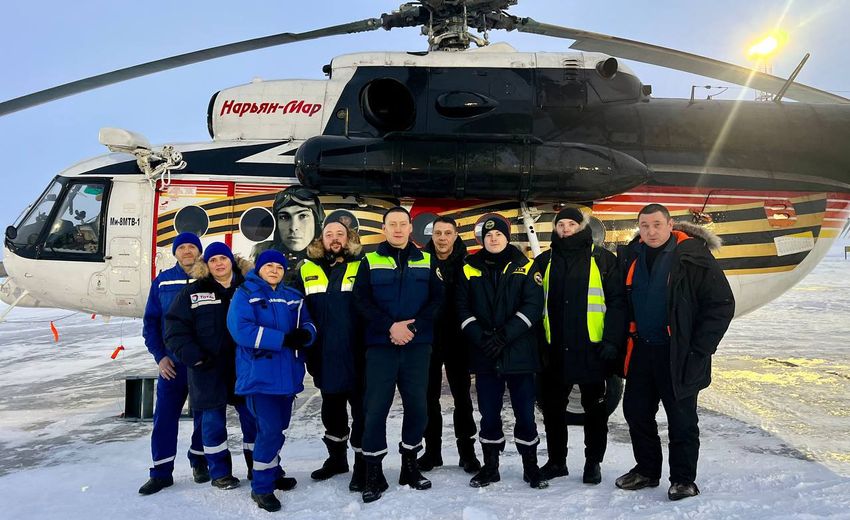 На востоке острова Колгуев, в мороз и сильный ветер с рыболовецкого траулера «Гнупур», экипаж Нарьян-Марского авиаотряда провёл эвакуацию члена команды с химическим ожогом.